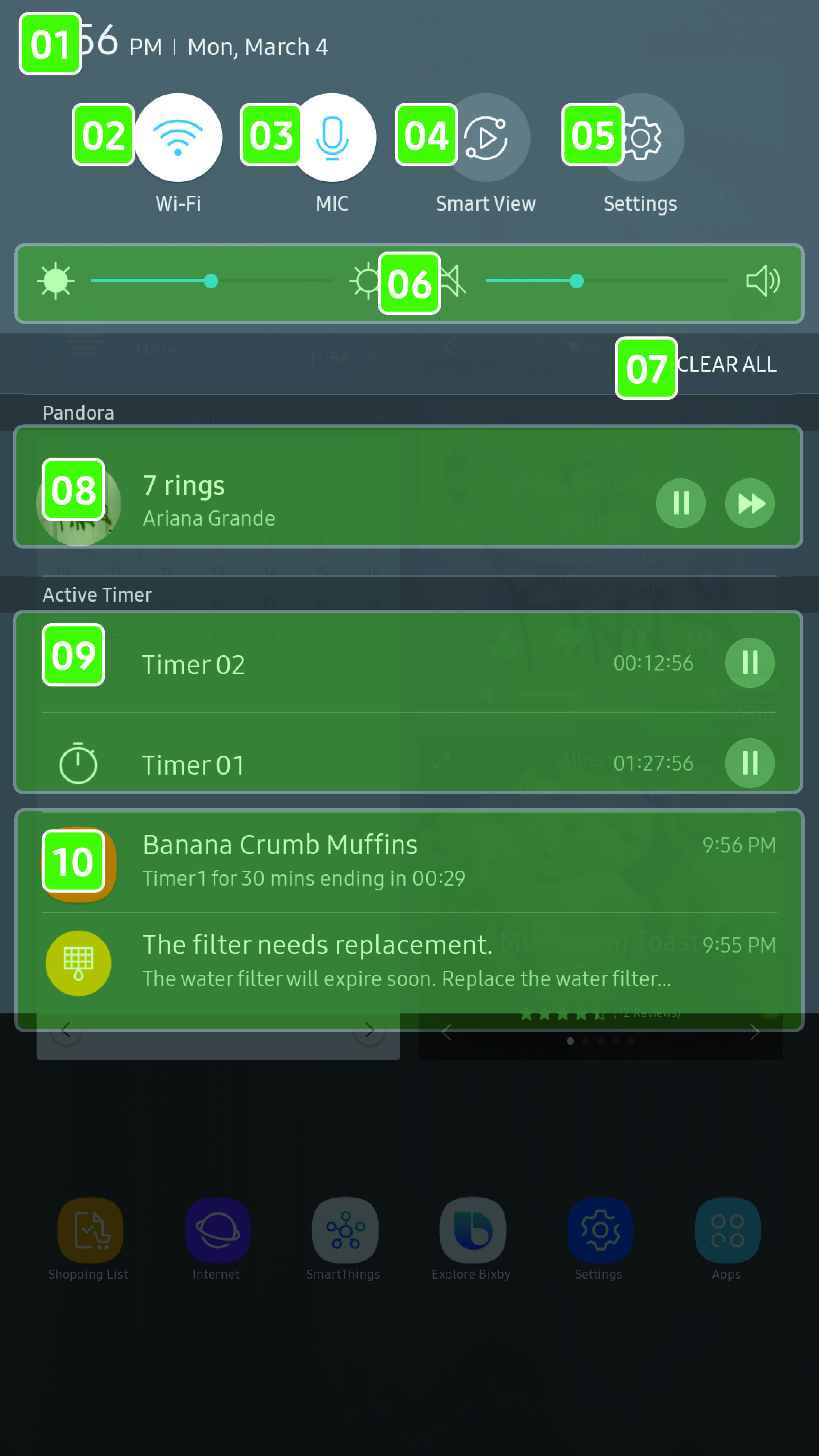Quick Panel displays notifications and allows you to adjust the quick control settings. To open Quick Panel, tap the Notification button.