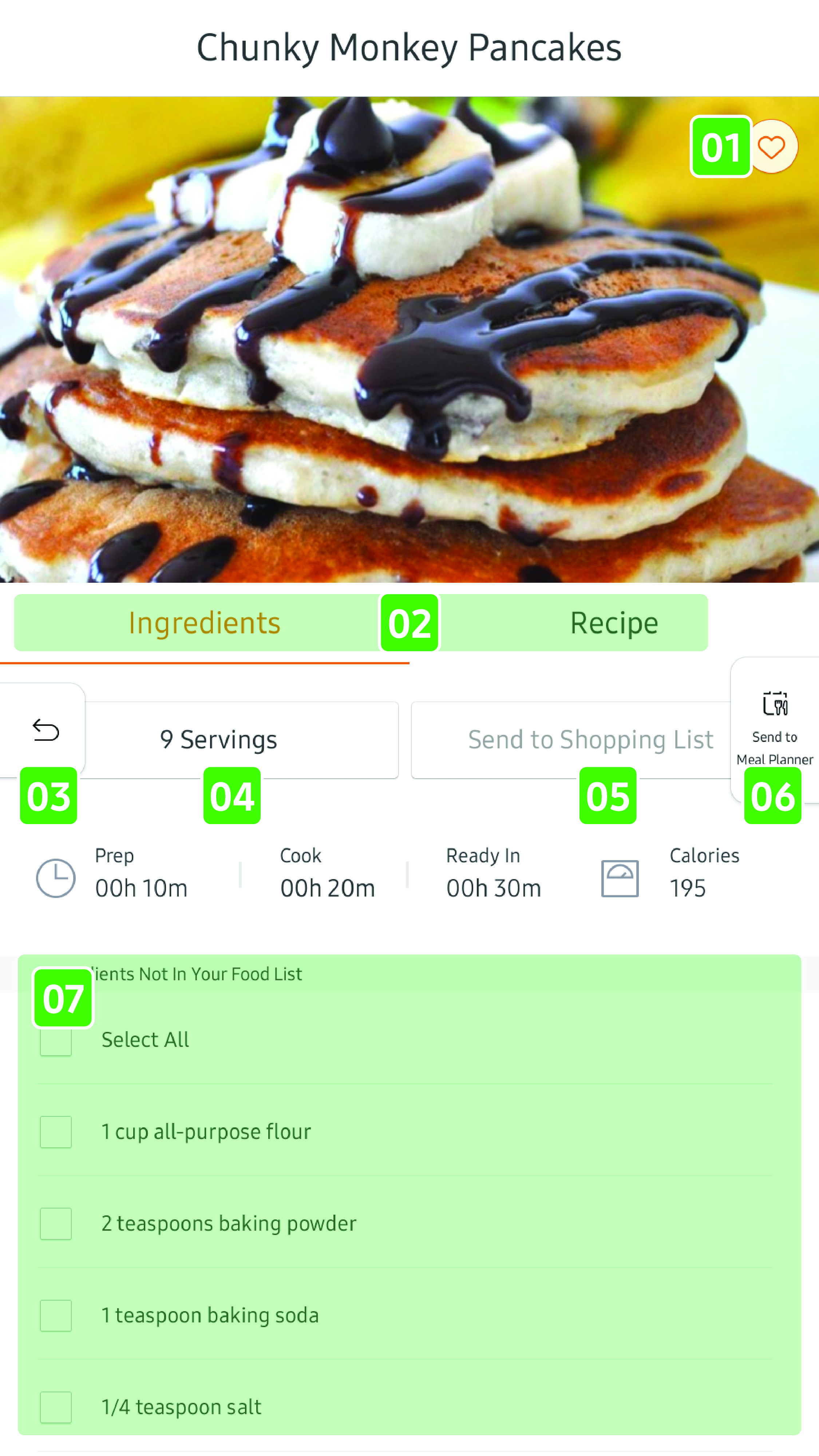 Once you have selected a recipe, you can view the ingredients information and step-by-step directions.