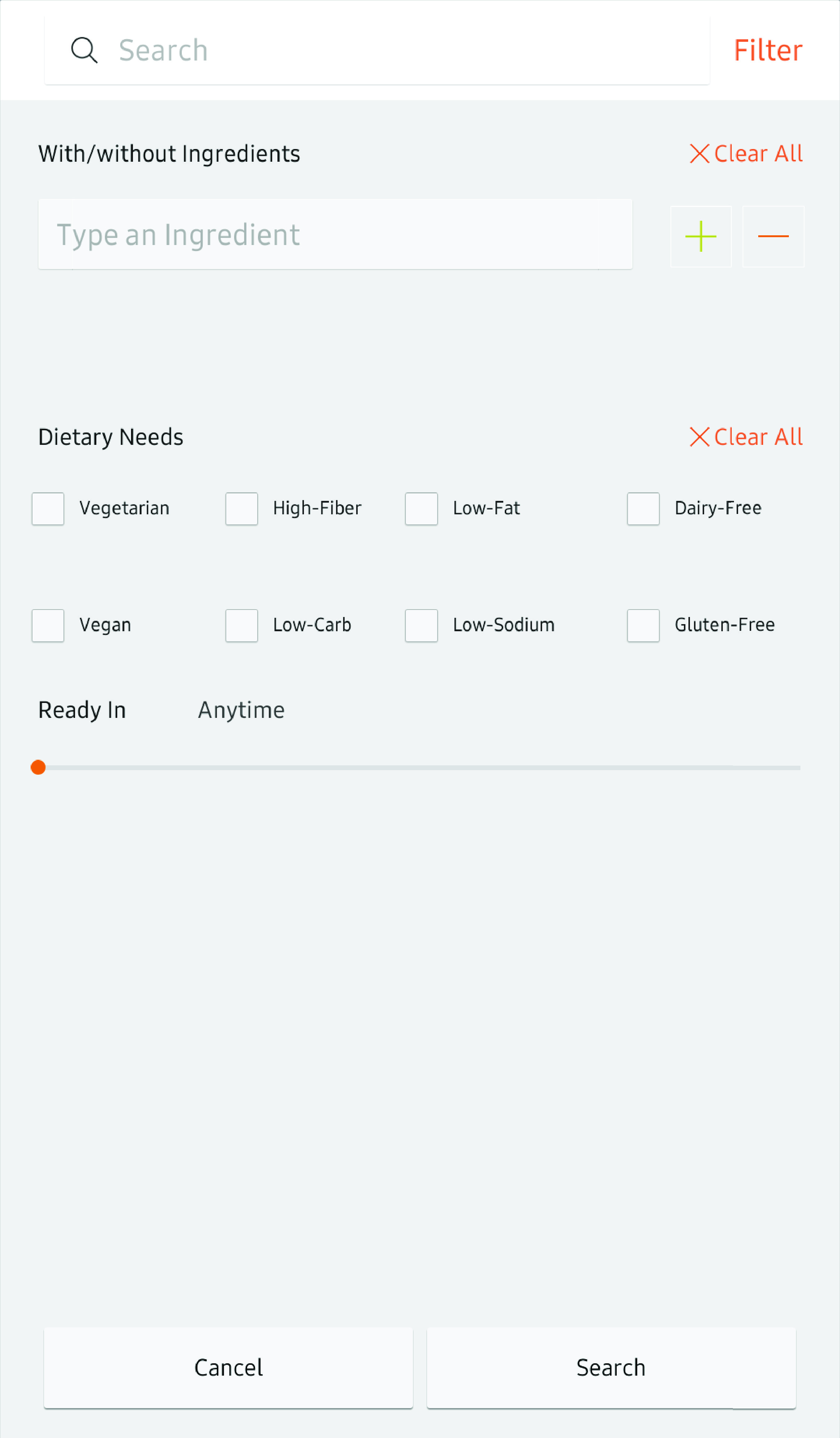 Tap Ingredients to see the required ingredients for the recipe, prep and cook times, and calorie information.