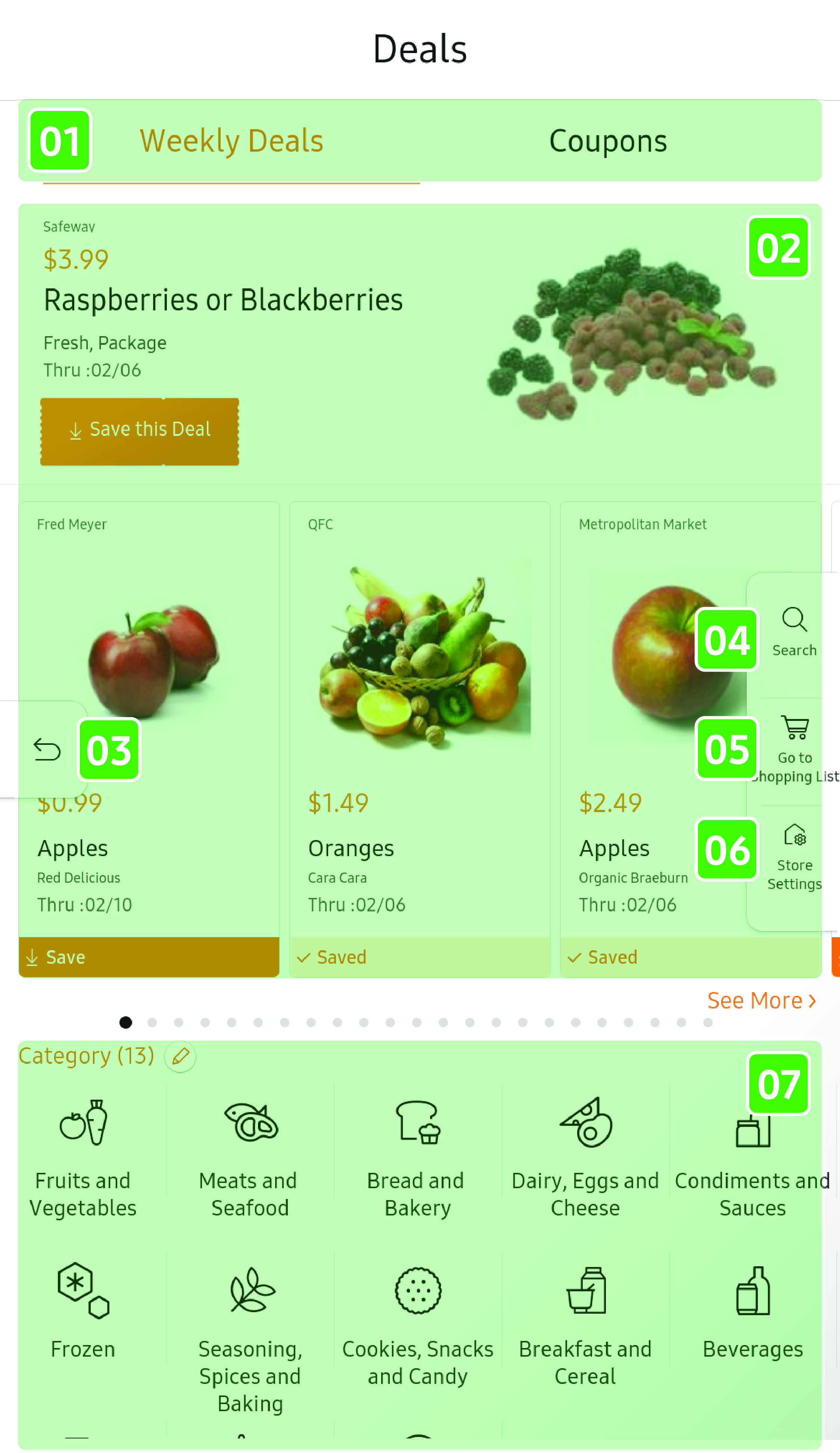 With the Deals app, you can easily search for and keep track of deals from local grocery providers.