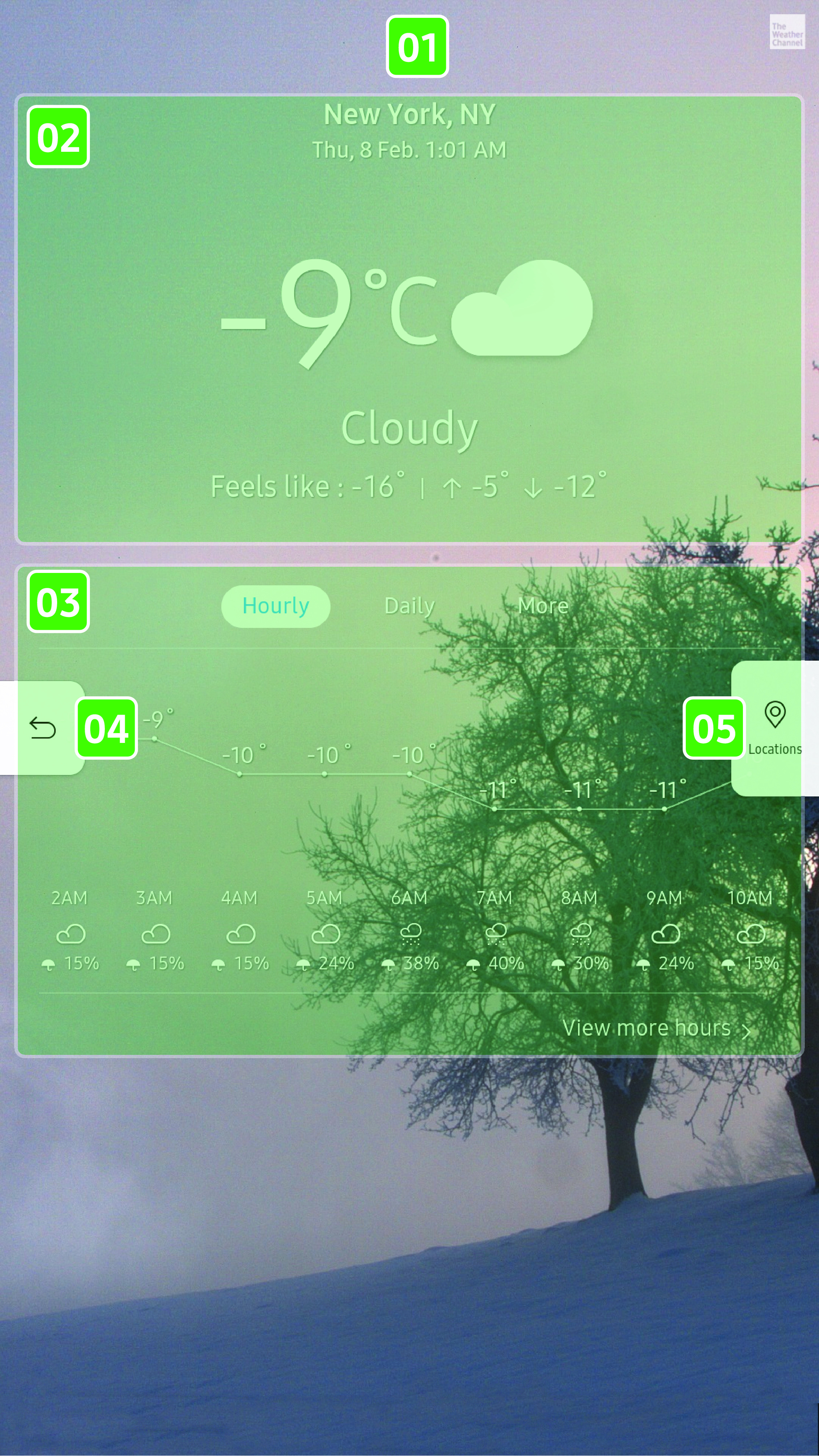 The Weather app lets you view weather information for up to 8 locations.