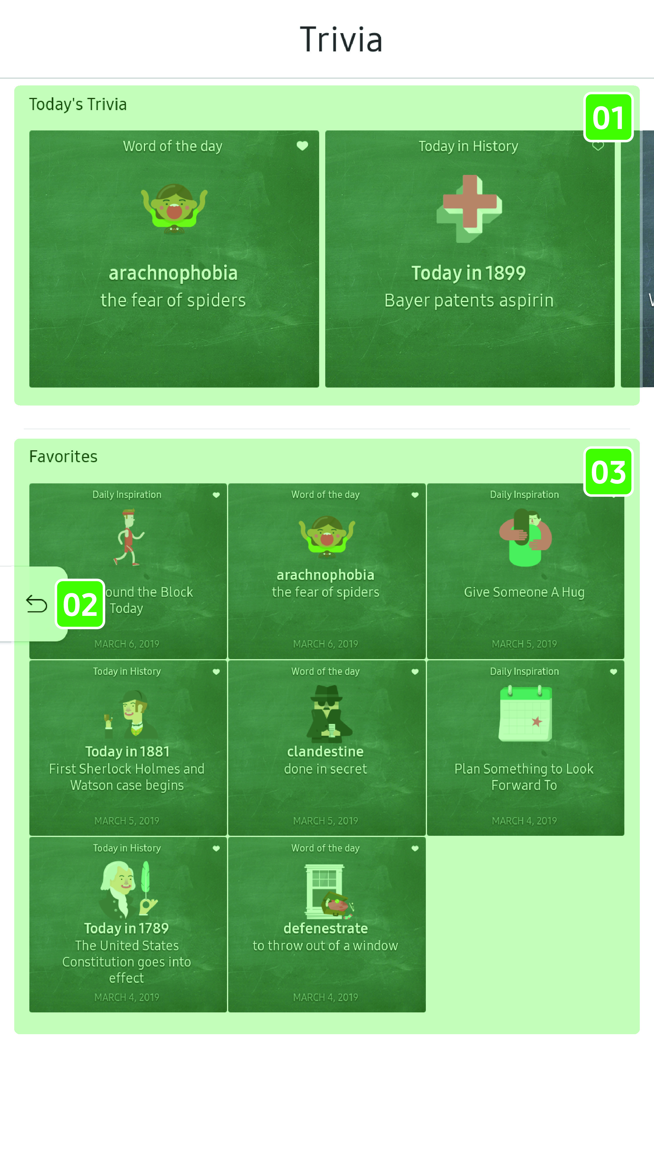Enhance your vocabulary with the word of the day, see what happened today in history, and get daily inspirations.